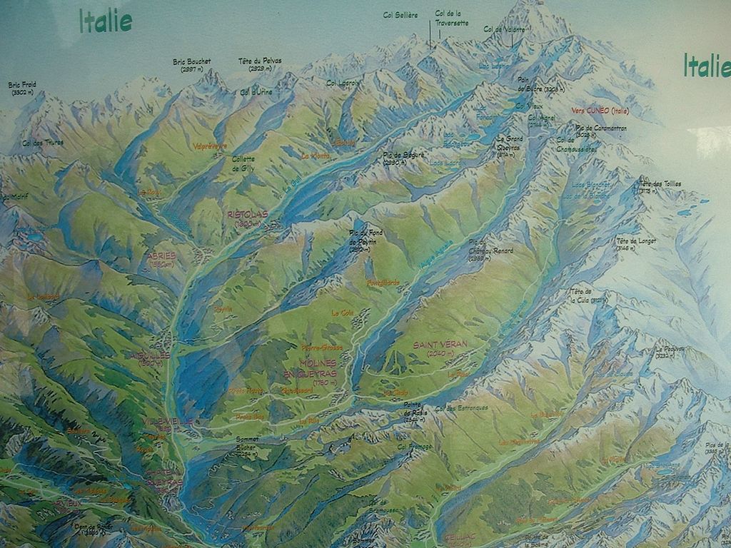 Een plattegrond waar onze route naar de Col Agnel (2744m) mooi op staat! 20.5km klimmen en 1400 meter hoogteverschil!!